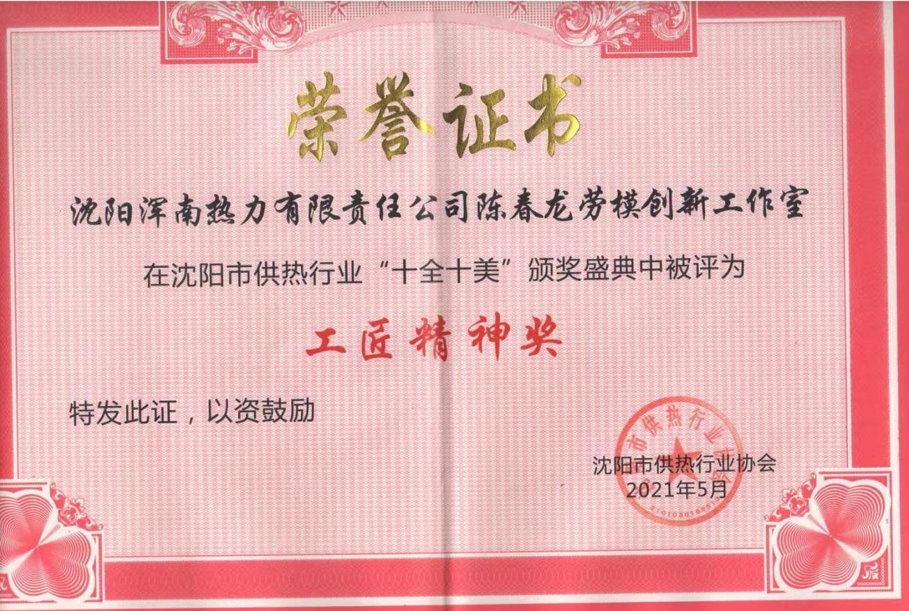 “他们是我们供热人的自豪,,,,,,,,行业的自满。。。。。”这是沈阳市供热行业协会给“工匠精神奖”获得者浑南热力陈春龙劳模立异事情室的颁奖词。。。。。