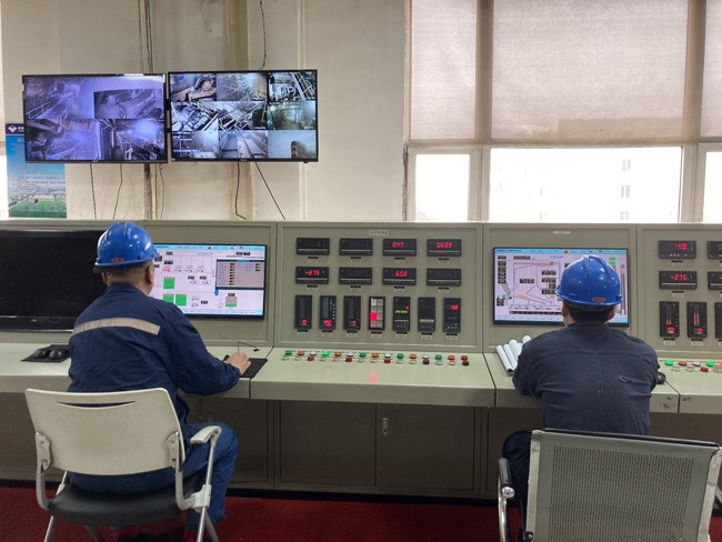 事情职员审查锅炉运转情形。。。。。。人民网 孝媛摄