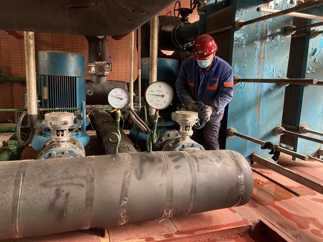 在浑南热力嘉华热力站,,,,,,,事情职员正在检查装备。。。。。。人民网 孝媛摄